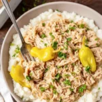 When your Crockpot Mississippi Chicken is done, shred the meat right in the pot so it soaks up every drop of that golden liquid. I use two forks to pull it apart gently, ensuring that the sauce coats every single bite. This step transforms the chicken breasts into the famous pulled Crockpot Mississippi Chicken texture we all crave.