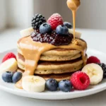 Layer your pancakes with plain Greek yogurt, granola (check for high-protein varieties!), and your favorite fruit slices like bananas or peaches. A drizzle of honey or agave ties it all together. This is one of my favorite protein pancake recipes.